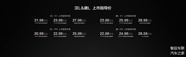 以超级e平台全域千伏架构,汉L EV重新定义中高端纯电旗舰的技术标准,让20万以上的主流纯电,正式进入兆瓦闪充、油电同速的新时代!汉L DM标配第五代DM技术,可满足用车强度更高的用户所需,让工作与生活更好平衡。同时,汉L全系标配智能底盘、天神之眼 B高阶智驾、DiLink 150高阶智舱,实现智电融合。此外,汉L采用Loong Face龙颜美学,并坐拥旗舰豪华大满配,更以全球五星安全标准为基底,缔造全维安全。以比亚迪“划时代技术矩阵”领衔,汉L全面展现划时代旗舰轿车风范!