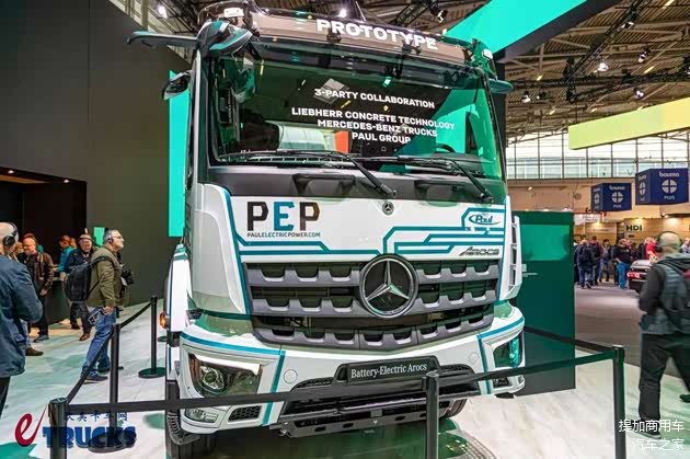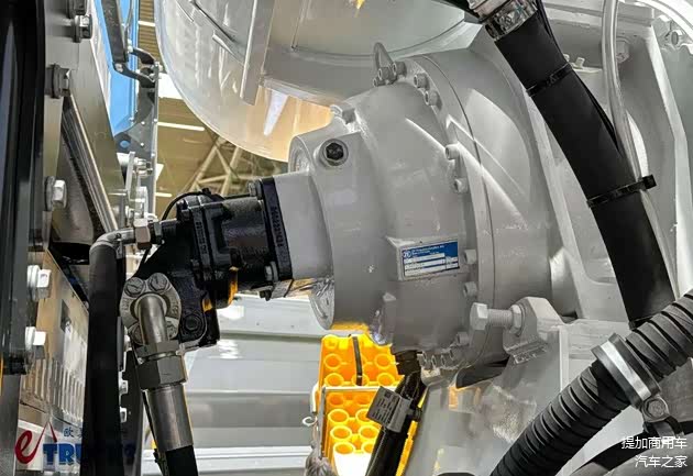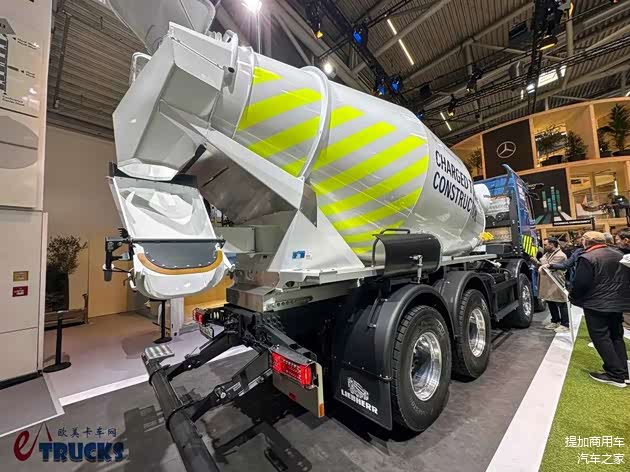 利勃海尔HTM 905水泥搅拌上装的旋转搅拌由液压动力驱动,因此需要经过能量转换,相对应的车载设备增加、能源利用效率降低。除了这款之外,奔驰还展示了另一款eArocs 400纯电动搅拌车。它的上装由中联重科旗下的CIFA打造,型号为ENERGYA E10。这款上装采用电动机直驱,标称容积达10m³,相应的GVW车辆容许总重也上升至了44吨。