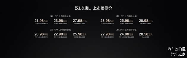 以超级e平台全域千伏架构,汉L EV重新定义中高端纯电旗舰的技术标准,让20万以上的主流纯电,正式进入兆瓦闪充、油电同速的新时代!汉L DM标配第五代DM技术,可满足用车强度更高的用户所需,让工作与生活更好平衡。同时,汉L全系标配智能底盘、天神之眼 B高阶智驾、DiLink 150高阶智舱,实现智电融合。此外,汉L采用Loong Face龙颜美学,并坐拥旗舰豪华大满配,更以全球五星安全标准为基底,缔造全维安全。以比亚迪“划时代技术矩阵”领衔,汉L全面展现划时代旗舰轿车风范!