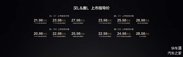 以超级e平台全域千伏架构,汉L EV重新定义中高端纯电旗舰的技术标准,让20万以上的主流纯电,正式进入兆瓦闪充、油电同速的新时代!汉L DM标配第五代DM技术,可满足用车强度更高的用户所需,让工作与生活更好平衡。同时,汉L全系标配智能底盘、天神之眼 B高阶智驾、DiLink 150高阶智舱,实现智电融合。此外,汉L采用Loong Face龙颜美学,并坐拥旗舰豪华大满配,更以全球五星安全标准为基底,缔造全维安全。以比亚迪“划时代技术矩阵”领衔,汉L全面展现划时代旗舰轿车风范!