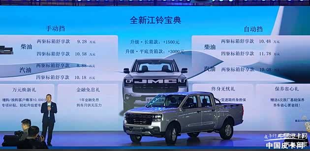 3月18日,江铃皮卡旗下全新宝典上市,新车根据汽油/柴油、手动/自动、两驱/四驱、标箱/长箱/平底货箱以及配置等分为多款车型,售价区间为8.88-11.78万元。