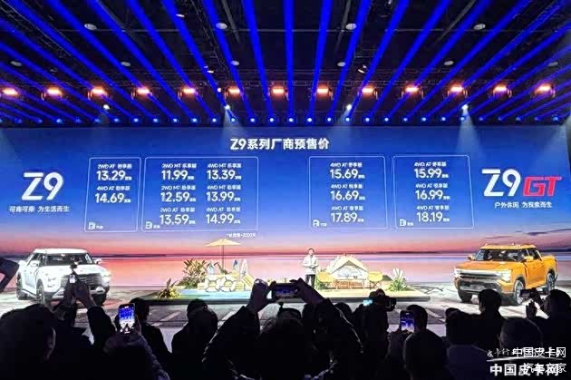 3月31日,郑州日产发布全新高端皮卡Z9,其中,Z9 GT为乘用版,Z9为商用版,预售价格区间为11.99-18.19万元,Z9 GTS为越野版,定位25万级越野皮卡。
