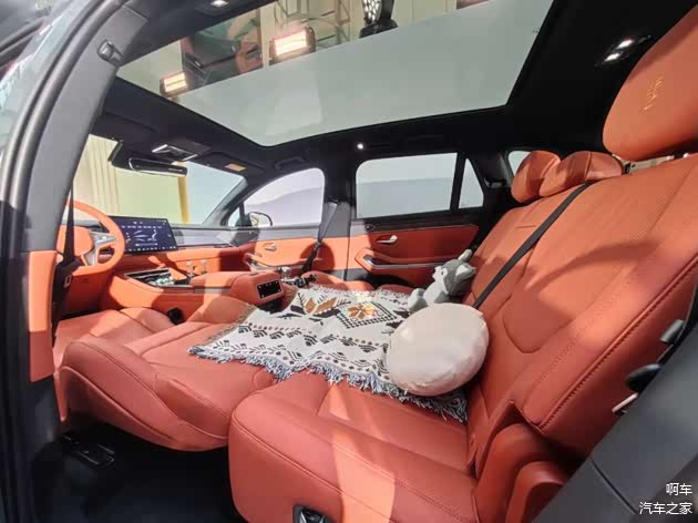 部份车型配备有11层填充结构的云感座椅(并提供通风加热、10点式按摩、14向电动调节、电动腿托……功能,加上立体环绕双层氛围灯、丹拿音响系统、车载冷暖冰箱、智能香氛……等配置,更加给人奢华的感受。