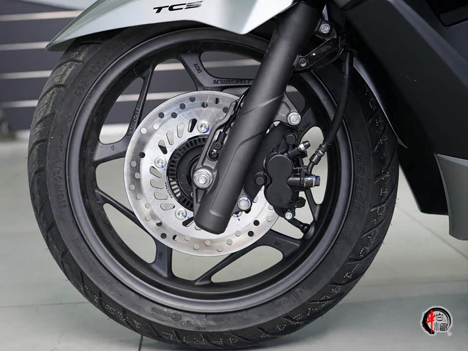 底盘硬件方面,摇篮式车架结构,整车重量135kg,座椅高度766mm,座桶可容纳全盔,高配版配备50L尾箱。减震系统采用正立式前叉与双枪液压后减震,支持五段预载调节。刹车系统前轮双活塞卡钳,后轮单活塞卡钳,标配双通道ABS与TCS,确保紧急刹车时车辆稳定性。