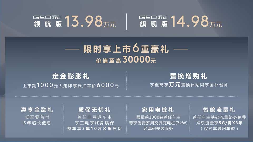 上汽大通G50混动版上市,售价13.98万元-14.98万元。新车搭载1.5L自然吸气发动机+前置单电机组成的插电混合系统,发动机最大功率72kW,峰值扭矩130N·m,电机最大功率160kW,峰值扭矩280N·m,CLTC纯电续航里程105km,CLTC综合续航里程1405km。