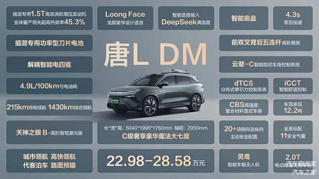 各位老司机请注意!前方高能预警!比亚迪家的新晋「六边形战士」——唐L,带着「这很难评」的黑科技直接杀疯车圈了!