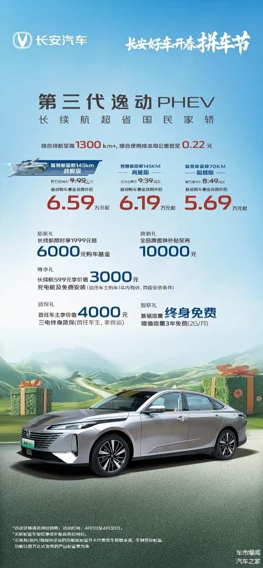 不仅如此,随着节能趋势日益加强,第三代逸动PHEV也同步以高性能低能耗的姿态登场。消费者下订即可享受1999元抵6000元购车基金、全品牌置换补贴至高10000元等多重钜惠,到手价低至5.69万元起,直接拉低插混入门门槛,让“绿色出行”成为更多家庭的现实选项。