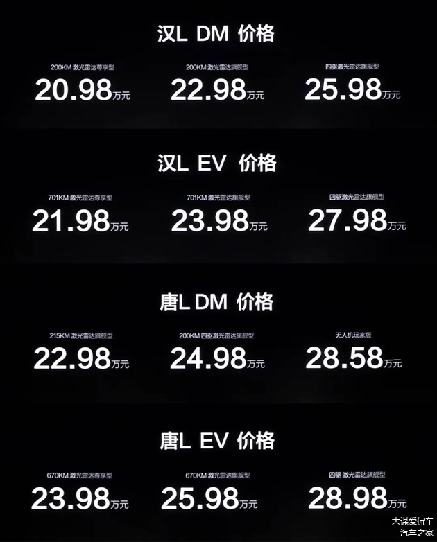 但挑战依然存在。20万-25万元区间竞争激烈,特斯拉、理想、问界等品牌虎视眈眈。汉L和唐L能否复制比亚迪秦Plus“油电同价”的成功,还需市场检验。