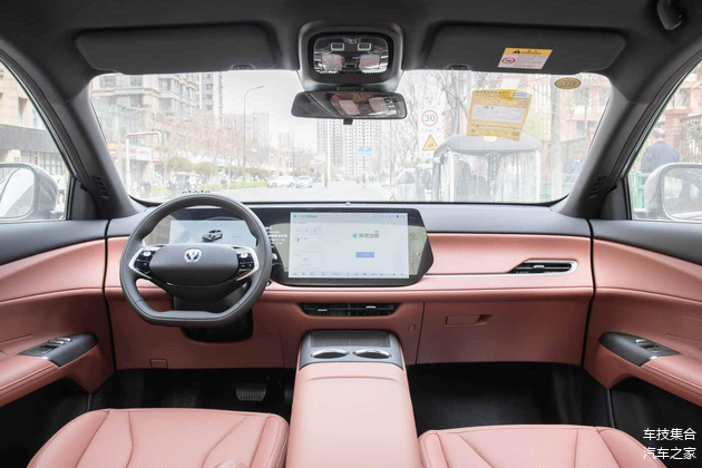 CS75 PLUS内饰采用了环绕式撞色装饰,双辐式平底方向盘带有电子怀挡,其前端则是10.25+14.6英寸双联屏,带有15W无线充电板的扶手箱完成了下掏空与中央贯穿;而座椅、门板扶手等区域则采用了仿皮,前者还支持前排电动调节与加热、二排靠背手动调节。