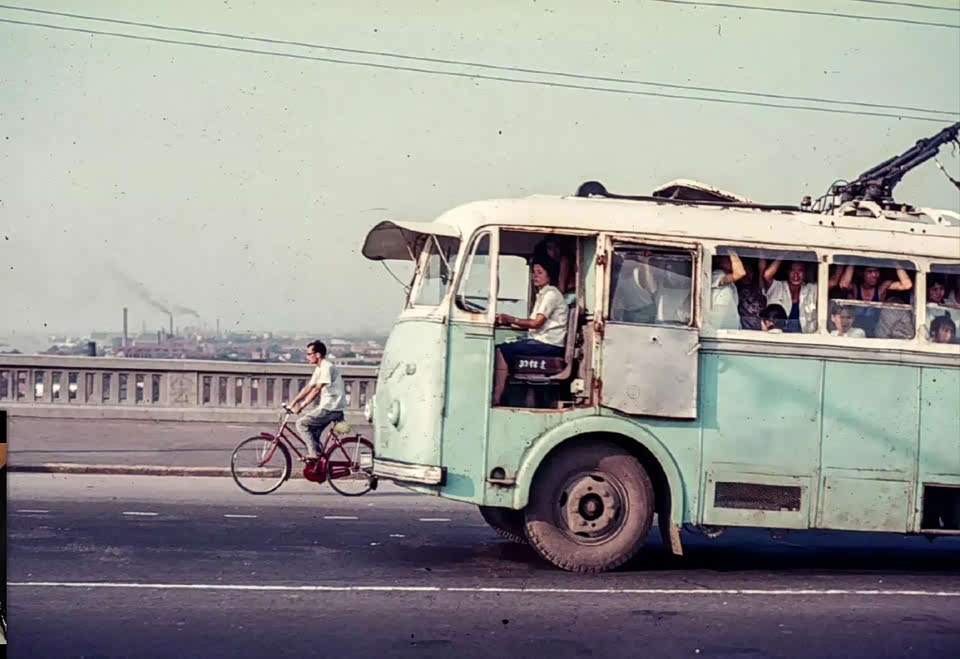 这张照片是法国摄影师1977年在武汉拍摄的,当时使用的还是有轨电车,司机还是一位女司机。