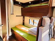 打开车门,三明治板工艺构建的C型房车结构赫然眼前,升降顶机构如同变形金刚的机关。不同于国内平举升顶的直线条美学,这款斜顶设计更像北欧风格的斜屋顶小屋。当夜幕降临,按下按钮,斜顶缓缓升起,车内瞬间多出一张能睡下一大一小的阁楼床,仿若城市上空的观星舱。