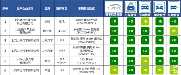 从官方信息得知,4月9日,中国汽车能效开发与检测认证专业联盟发布首批纯电动乘用车能效分级测评结果,首批覆盖12款市场主流车型,从行车能效、驱动能效、空调能效、补能能效四大维度进行综合评价。旨在推动行业从“续航竞赛”转向“真实能效管理”,并为消费者提供透明化的购车参考
