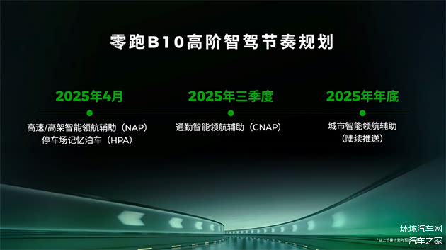 同时,零跑B10采用了自研的端到端大模型智驾,支持高速智能领航辅助、通勤智能领航辅助等高阶功能,未来还将通过OTA实现城区智能领航辅助,相比采用供应商方案,自研智驾可以更稳定地为用户提供免费的OTA升级服务,真正推动高阶智能驾驶技术的全民化进程。