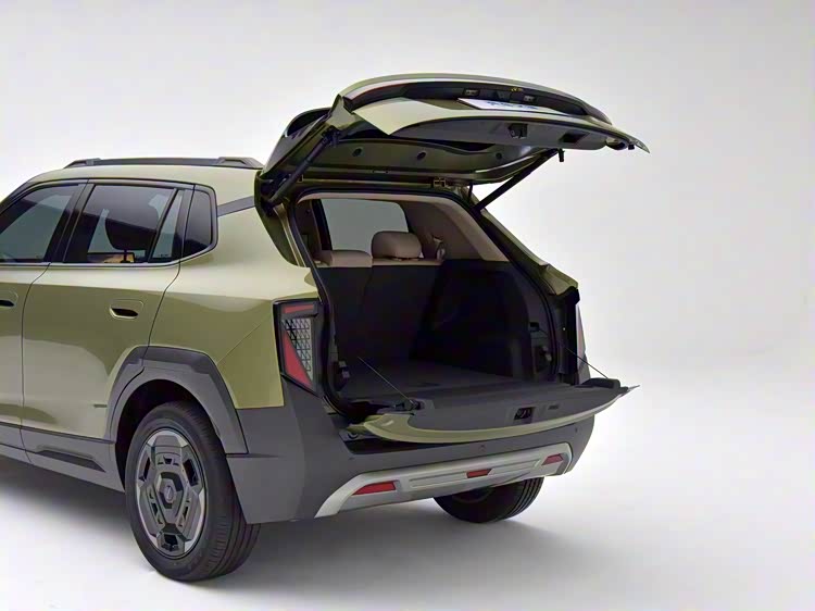 侧面整体还是平直硬朗线条,采用半隐藏式门把手,悬浮式车顶设计,前后轮拱处采用黑色设计,与前保险杠融合,另外还配备了车顶行李架。新车长宽高分别为4306mm/1868mm/1645mm,轴距2715mm,车辆接近角23度,离去角30度,最小离地间隙151mm。车身颜色方面,新车提供踏浪白、一定银、扶光橙、漫野绿、油彩黄、赛博黑可选,都是偏向年轻的配色。