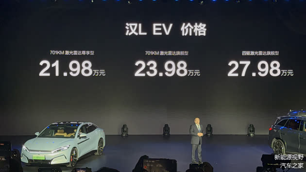 2025年4月9日比亚迪全新轿车汉 L EV正式上市,新车共发布3款车型,指导售价区间20.98万元--27.98万元。动力上,搭载1.5T插混系统和单、双电机驱动系统,百公里最快加速仅需2.7s。
