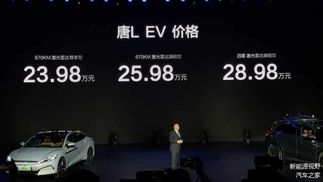 2025年4月9日比亚迪全新SUV唐 L EV正式上市,新车共发布3款车型,指导售价区间22.98万元--28.58万元。动力上,搭载1.5T插混系统和单、双电机驱动系统,百公里最快加速仅需3.9s。