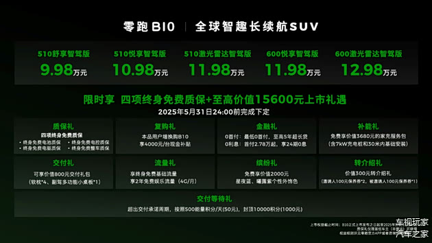 4月10日, 零跑B10正式上市,以「全域自研」为核心,在外观、内饰、配置、智能、安全五大维度突破同级标准,以9.98万-12.98万元价格,重新定义主流纯电SUV价值标杆。