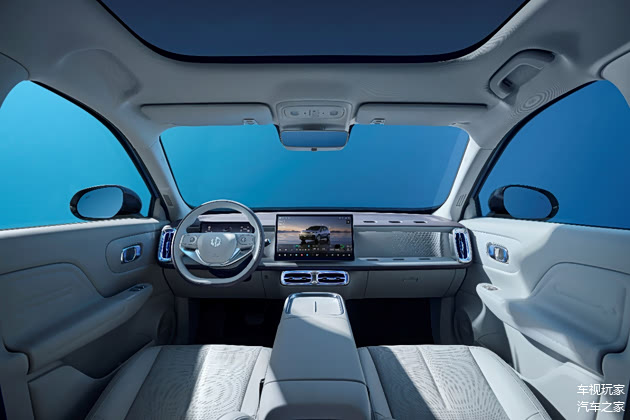 内饰以「悦动几何」为理念,14.6英寸2.5K悬浮中控屏与8.8英寸仪表构成黄金视角,开放式岛台设计取消传统扶手箱,形成双层储物空间,可容纳14寸笔记本电脑,无线充电与翻折杯托隐藏其中。副驾「魔术拓展坞」支持加装折叠桌板或手机支架,转化为多功能场景舱。2735mm轴距搭配纯电平台「四轮四角」布局,实现87.4%超高得房率,后排腿部空间达950mm。前后排座椅放平后形成1.83米纯平空间,配合1.83㎡全景天幕(带电动遮阳帘),满足露营等多场景需求。座椅采用竹炭纤维混纺面料(欧盟母婴级认证),中控台环保材质打造无压座舱。