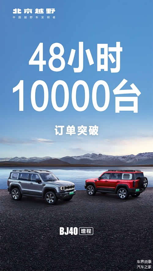 BJ40增程上市仅1小时,订单量就突破3000辆;48小时突破10000辆,迅速赢得大量消费者的青睐,抢先体验的用户更是对其赞不绝口。全国多个城市的销售展厅中挤满了人,看车、试驾都需要排队,人气异常火爆。可以预见,BJ40增程的强劲势头,将成为增程硬派SUV实力选手,让更多家庭享受属于自己的户外生活。