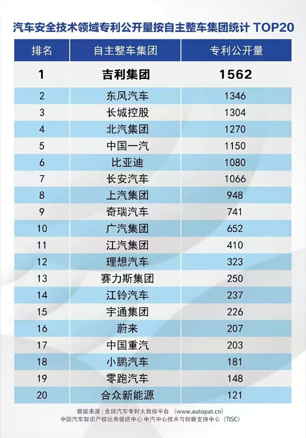 吉利银河发布2年来,已做过多场诸如电芯八针同刺、整车高速三车连环碰撞等一系列神盾电池安全系统公开测试,全面覆盖电芯级、电池包级以及整车级,每一次超纲安全测试,吉利银河都高标准通过。据权威机构公布的自主整车集团公开安全技术专利数量排行中,吉利更是以1562项的专利数排名第一。诸如新能源汽车隐藏式门把手解锁的相关核心技术,吉利已向全行业开放共享。