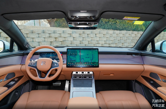 整个内饰空间也有点豪华的韵味了,特别是提供了大面积的木纹装饰面板,而且穿插了大量的软包材质覆盖,全系中控车机屏幕15.6英寸,窄边框视觉效果已经比较有冲击力,实际上手体验车机流畅度相比普通版本也是有所提升的。