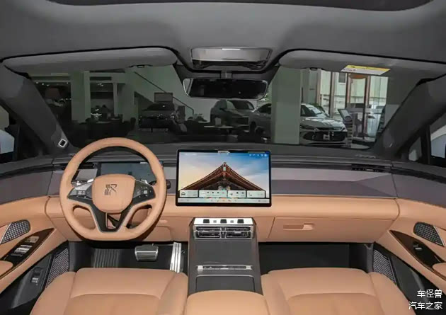 在内饰设计上,汉L延续了其家族化的设计理念,提供了三幅式多功能方向盘、全液晶仪表盘、悬浮式中控屏和电子怀挡等多种配置选项。方向盘配备了智能驾驶和泊车拨片功能,允许用户一键激活高级智能驾驶和自动停车选项;操作台的设计包括一个无线充电面板和一个带有盖板的储物槽,这使得其存储空间比现有的汉家族更为丰富。