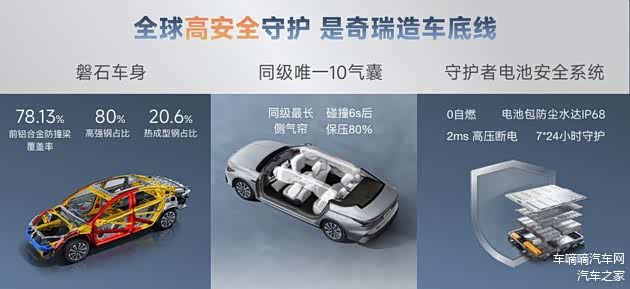 对于用户而言,安全才是最大的豪华。为了守护用户出行的一次万一,风云A8充分发挥奇瑞安全优势基因,全车基于全球五星安全标准开发,高强度钢占比达80%、热成型钢占比达20.6%,前铝合金防撞横梁覆盖率78.13%。同时,风云采用本特勒热成型一体式门环设计,拥有同级领先10气囊配置,其中侧气帘长1983.7毫米覆盖面更广,且支持6秒保压,能后在发生碰撞时保障乘员舱结构的完整性,并降低二次伤害,守护用户出行安全。