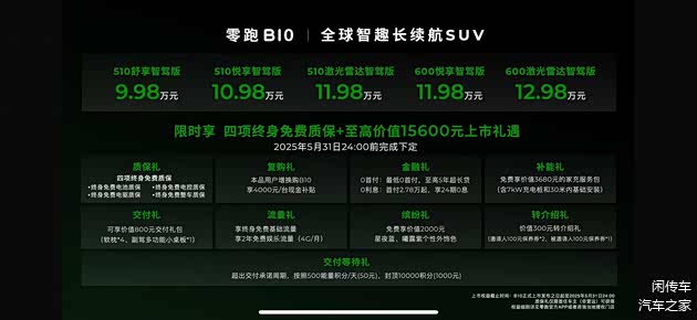近日,零跑B10车型正式上市,该车以纯电动车先行的身份,起售价格不到10万元,应该说基本在预料之中,主要是此前的预售价格相当的微妙,怎么看最终再降一点都要跨过这个门槛,还是有着不错的冲击力。