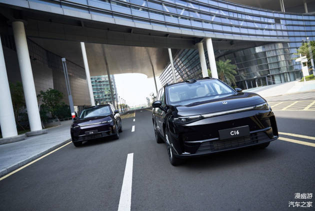 零跑C16和奕派008一样,提供了增程式和纯电动两种动力组合,其中增程版车型配备新一代高效增程器,匹配1.5L发动机,最大功率为70kW,电机最大功率为170kW,扭矩为320N·m,满油满电续航里程为1095km,馈电状态下的百公里油耗为5.4L。纯电车型的电机最大功率215kW,扭矩360N·m,提供容量分别为67.7kWh和74.9kWh的两种磷酸铁锂电池组,对应CLTC纯电续航里程为520km和580km。其中520km车型的百公里电耗为14.8kWh,580km车型百公里电耗为14.5kWh。作为中大型6座SUV,电耗比中型5座SUV还要小。得益于其配备的800V高压SIC三合一电驱。充电功率最大180kW,电量自30%充至80%仅需15分钟,较中压平台快1倍。整车驱动综合效率高达92%,续航提升6%。