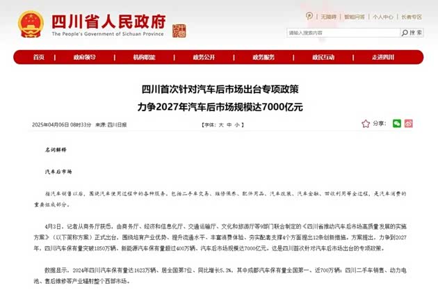 据四川省人民政府官网,四川省有关部门正式出台《四川省推动汽车后市场高质量发展的实施方案》,主要鼓励发展汽车后装市场。据悉,四川省力争到2027年汽车保有量突破1,850万辆、新能源汽车保有量超过400万辆、汽车后装市场规模达 7,000亿元。具体产业方面,有关部门将引导产业链上下游企业建立利益联结机制,支持电池头部企业迭代升级锂电池产品,发展钒液流、钠离子、氢燃料等新型储能技术。
