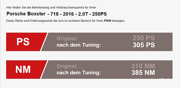 车辆基本信息与升级诉求此台718 Boxster搭载的只是一台2.0T水平对置四缸发动机,这台全新的2.0T涡轮增压发动机采用了源于赛道的VTG(可变几何涡轮)涡轮增压技术,显著提升了发动机效能,它的原理就是通过增压器里增加了一个废气旁通阀,可以调节涡轮导流叶片始终对增压器进行控制,来实现最佳效率。当你选择驾驶模式“Sport”和“Sport Plus”时,旁通阀被关闭,点火延迟,节气门也预先开启,这样的结果就是可以让车辆保持扭矩不变,增加发动机的空气量,提高增压压力,提供更高的瞬时扭矩。实际数据最大马力250马力(6500转/分),峰值扭矩310牛•米(1850-5000转/分),与发动机相匹配的是一台7速的PDK双离合变速箱。对于一款2.0t排量的车型来说,这套动力搭配中规中矩,但对于一款性能跑车来说尤其是同排量AMG 381hp的数据来说,还是有不小的差距,并且伴随着低档位换挡顿挫的现象,影响了驾驶的乐趣与舒适性,为了能在安全范围内拓展出这款车在国内最佳的动力与操控,一对一定制的刷ecu是个不错的选项。