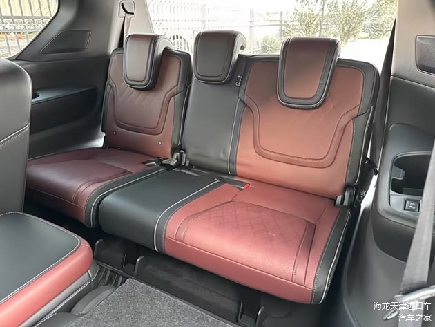 第一排和第二排座椅采用半苯胺皮真皮,第三排真皮座椅,第一排按摩座椅,无框智能后视镜,生物智能识别技术