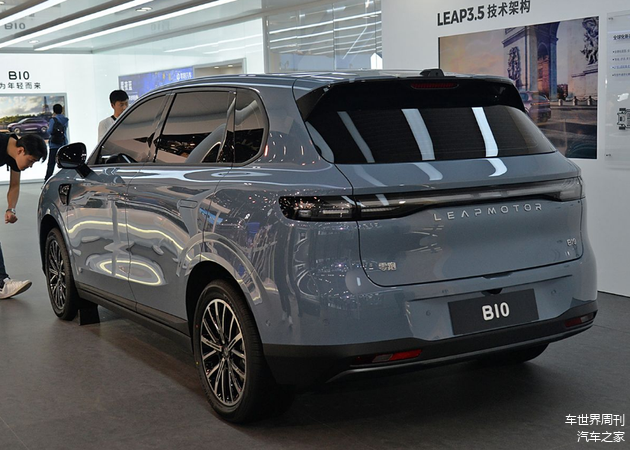 来到车尾,零跑B10最大亮点就是配备了贯穿式LED尾灯,两侧还设计了不规则的间断造型,搭配英文标识LEAPMOTOR,带来不错的辨识度。此外,新车还配备了车尾扰流板,搭配熏黑后包围,进一步提升了运动气息。