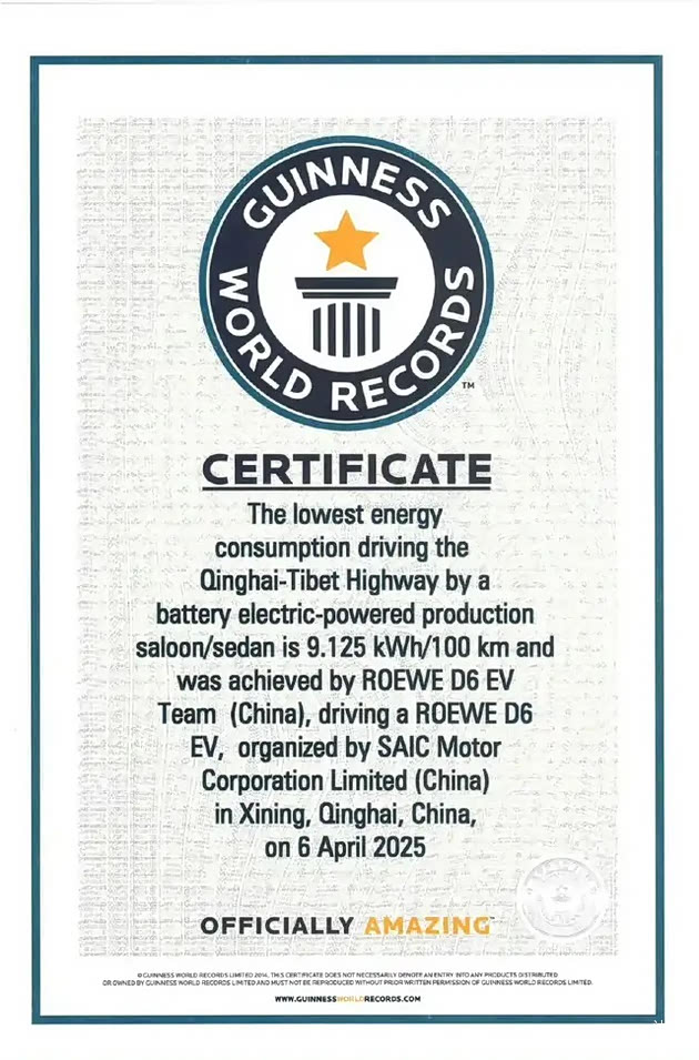 “科技是第一生产力”,这句话在当今时代愈发显得贴切。就在最近,中国纯电车技术再次传来振奋人心的消息——上汽荣威纯电D6以9.125kWh/100km的电耗,成功获得吉尼斯世界纪录认证,成为全球驾驶量产纯电轿车通过青藏公路能耗最低的车型。这一消息无疑给中国新能源车市场注入了一针强心剂,但与此同时,也引发了人们对于这一成就是否仅为噱头的讨论。