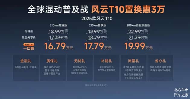 中国旗舰,再树标杆!4月10日,超长续航旗舰电混SUV——2025款 风云T10于奇瑞“混动之夜”尊耀上市,以16.79-19.99的置换厂补一口价将中大型电混SUV旗舰标准推向全新高度。作为奇瑞风云扛鼎力作,2025款风云T10集超长续航、豪华舒适、全维安全等优势集一身,不仅重新树立了中国混动豪华SUV的价值标杆,更带来“8重豪礼”,开启全民旗舰新时代。