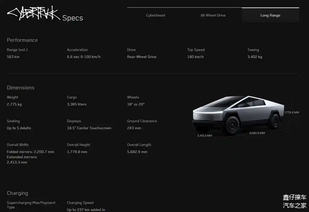 此次推出的后轮驱动版本,为Cybertruck产品序列带来了新的技术组合。根据官方信息,新车搭载长续航电池组,预计可实现约563公里的续航表现,相较当前在售的双电机全轮驱动版本有所提升。新车型整体质量控制在2775千克,相比双电机版本减少234千克,动力系统结构更为精简。