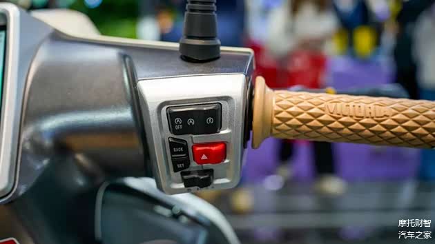 万丰铝轮,半热熔轮胎。整体式闸把开关,维多利亚专属精雕握把,拇指区的扇形按键群,更好触达。