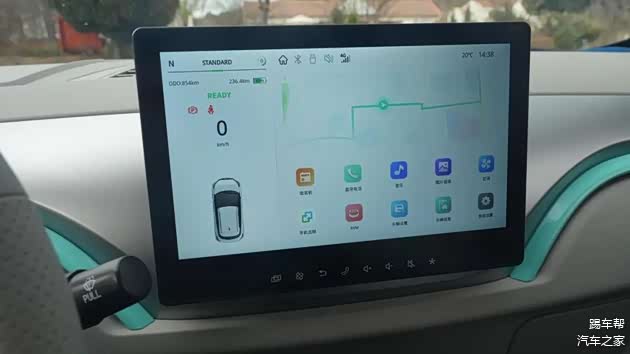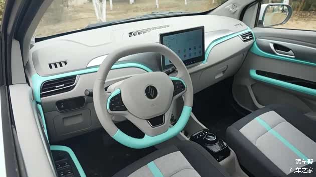 坐在EV3 PLUS浅灰色为主,蓝绿色为点缀的驾驶室内,一种轻松愉快的心情油然而生。中控屏的尺寸不大,但手机互联、语音控制、全景影像等功能一样不少。旋转式换挡开关控制简便,不容易发生误操作。朴实无华的整体设计加上几种清新活泼的内外配色,这款车的视觉效果完美契合着它的定位:面向青年女性的短途代步工具。