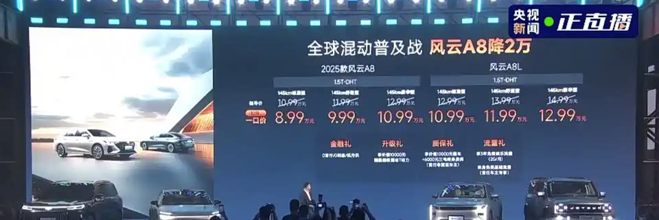 奇瑞在2025款车型上市中推出了风云A8、T9和T10,并同时宣布价格策略。