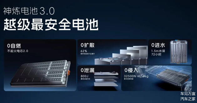 电池作为电动车的核心储能单元,碰撞后的稳定性直接影响行车安全。经过三代升级的神炼电池3.0这次玩的是“五零安全”概念——不起火、不爆炸、不漏水、不怕撞、不窜热。它的核心技术藏在两个设计里: