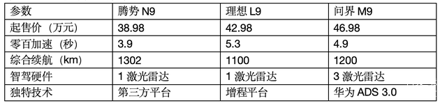 核心优势:腾势N9以更低价格提供更强的动力性能、更灵活的操控与更高的安全冗余,差异化竞争策略显著。