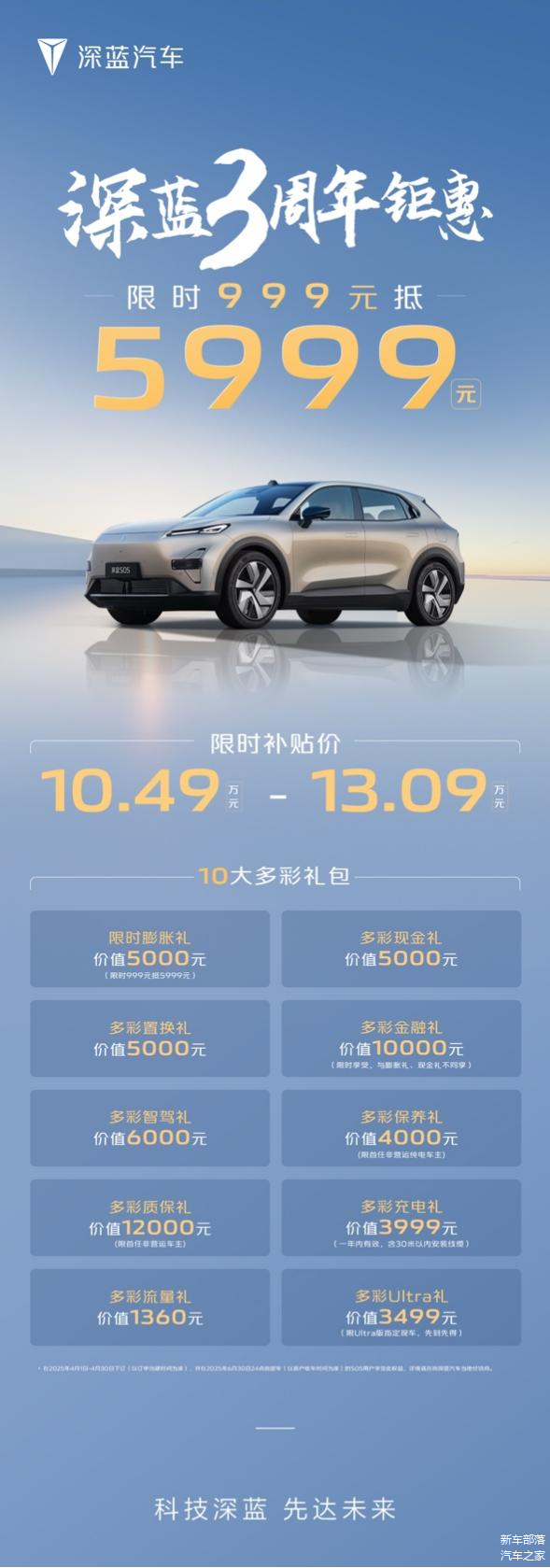 综合对比来看,深蓝S05纯电版在三电、空间、智能上全面完胜,不仅在品质、技术上更领先,而且主打全系标配,入门就是高品质水准,现在限时补贴价也相当给力,诚意上同样值得肯定,相信对于预算在10万级的消费者,深蓝S05纯电版就是最值得选的纯电SUV!