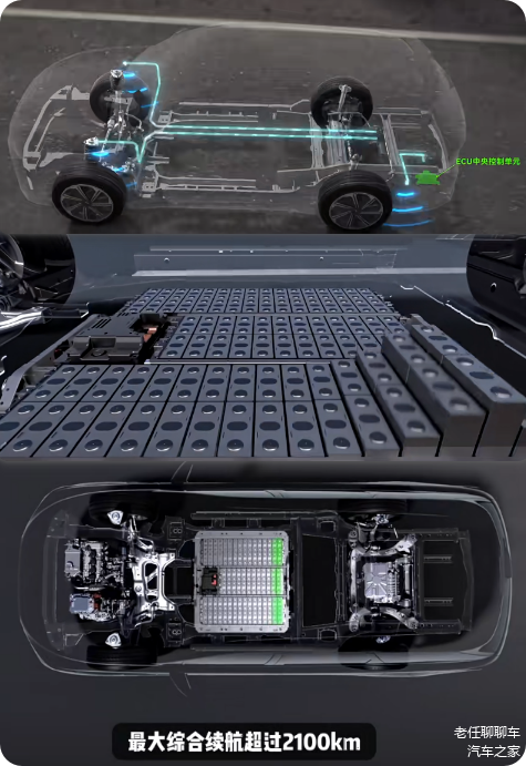 山海T2加长版:配备CDM-O混动系统(2.0TD发动机+双电机),综合功率455kW,纯电续航206km,综合续航1300km,馈电油耗6.53L/百公里,支持800V超充(10分钟补能350km)。