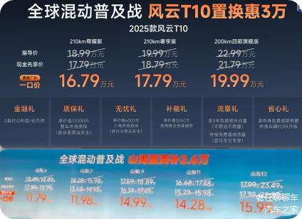 风云T10以“技术普惠”重塑价值标杆,山海T2加长版填补七座混动越野空白,但需警惕竞品价格战。