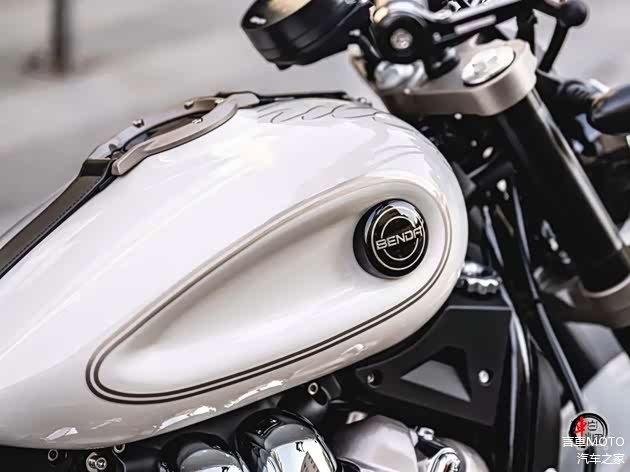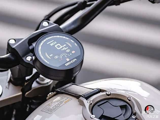 全车LED光源的灯组并未追求夸张造型,前大灯用V形光带完成基础照明与氛围营造的双重使命,亮面镀铬包边,进一步增强了前大灯的精致感和高级感,使得整车外观更加时尚大气。车尾转向灯和尾灯的分体式设计,使得灯组功能更加明确和独立,提高驾驶安全性和辨识度。车机系统采用全贴合LCD圆形液晶仪表,信息呈现足够克制,油量、里程、转速、时间等实用数据清晰可辨。此外,在油箱侧面增加了USB充电接口,提升实用性。