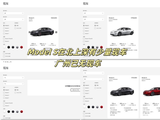 笔者还分别点进去看了一下两车的现车状况,以四大一线城市北上广深为例,截止到笔者截图时间,Model S在北上深还有少量现车,不过一共也就五台,而Model X的情况要更加严峻一点,北上广深全军覆没,已经没有现车可提了,或许在你们看到这篇文章时,所有现车都已售罄也说不定。