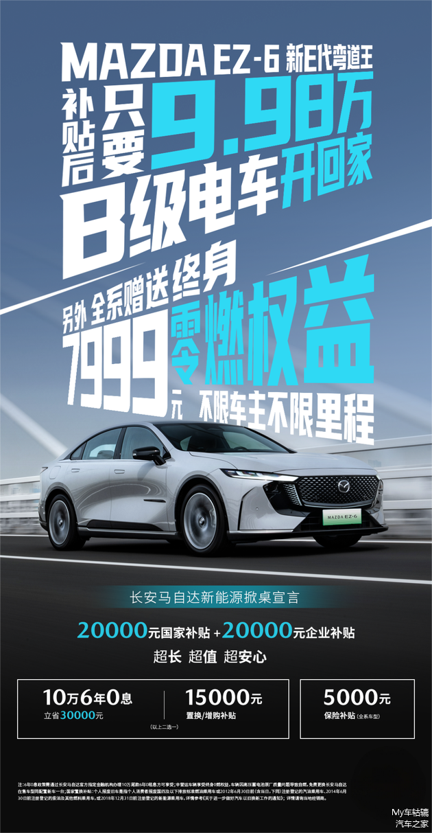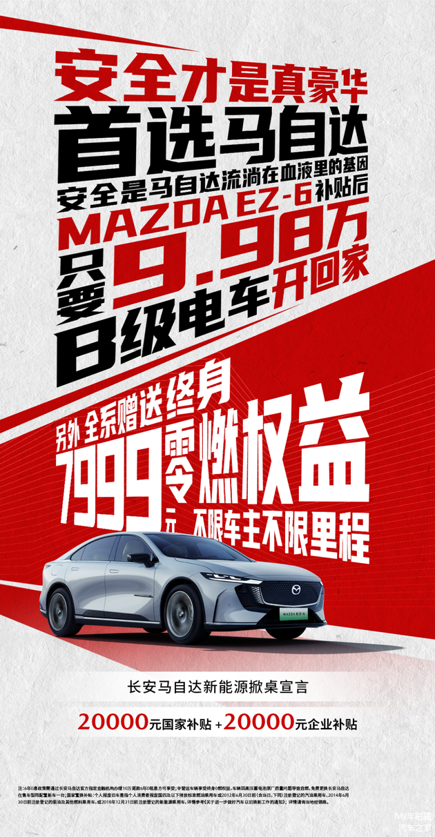 当“10万级B级电车”与“合资品牌”两个标签碰撞,马自达给出了颠覆行业的答案。4月焕新上市的MAZDA EZ-6鹭羽白内饰版,以补贴后9.98万元起售价、全系赠送终身零燃险、6年0息贷款等激进政策,直击新能源车市场痛点。这款兼具“电感弯道王”操控基因与全域安全堡垒的全球化车型,是否真的能成为合资电车市场的破局者?