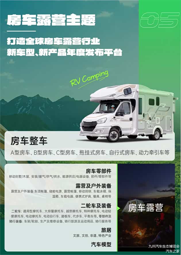 此次房车露营主题展将是一场舒适自然的绿色盛会,带你体验前所未有的汽车生活,享受自由旅行的乐趣!