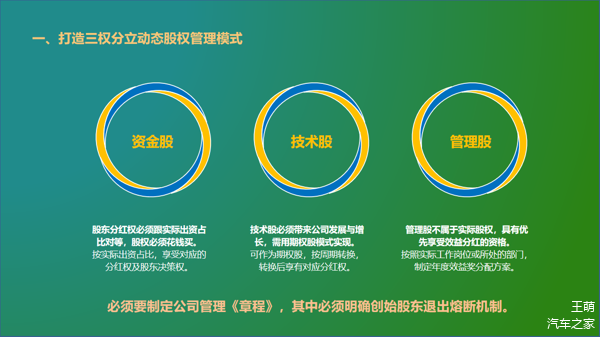 很多二手车企业就如同当年“农民军起义”,草台班子居多,打虎亲兄弟,上阵父子兵,团伙扁平化管理,早期发展快,时代红利获利好,但是到了一定程度和目前阶段,就需要更多的“规矩”和规范了!一定要提前打造好三权分立的动态股权管理模式。