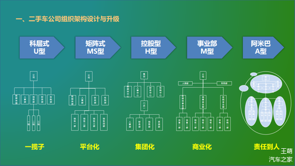 绝大部分的二手车老板管理属于“一揽子”,累死老板,有人手,也有部分人才,但是难以形成高效和规模。某些中型二手车企业开始平台化思维,比如收购合伙人,新媒体合伙人等等,但是也不够科学,发展到一定程度也有矛盾和瓶颈。未来的二手车企业将出现集团化和商业化的趋势,类似于原来新车市场二级代理,后来发展到多个4S店,然后成为汽车4S店经销商集团,中国的二手车也早晚会走这条路。一些创新管理模式,比较适合“灵活”的二手车行业,比如阿米巴等模式。当然这个与企业老板们的认知和格局,以及企业基因文化也是有差别的。